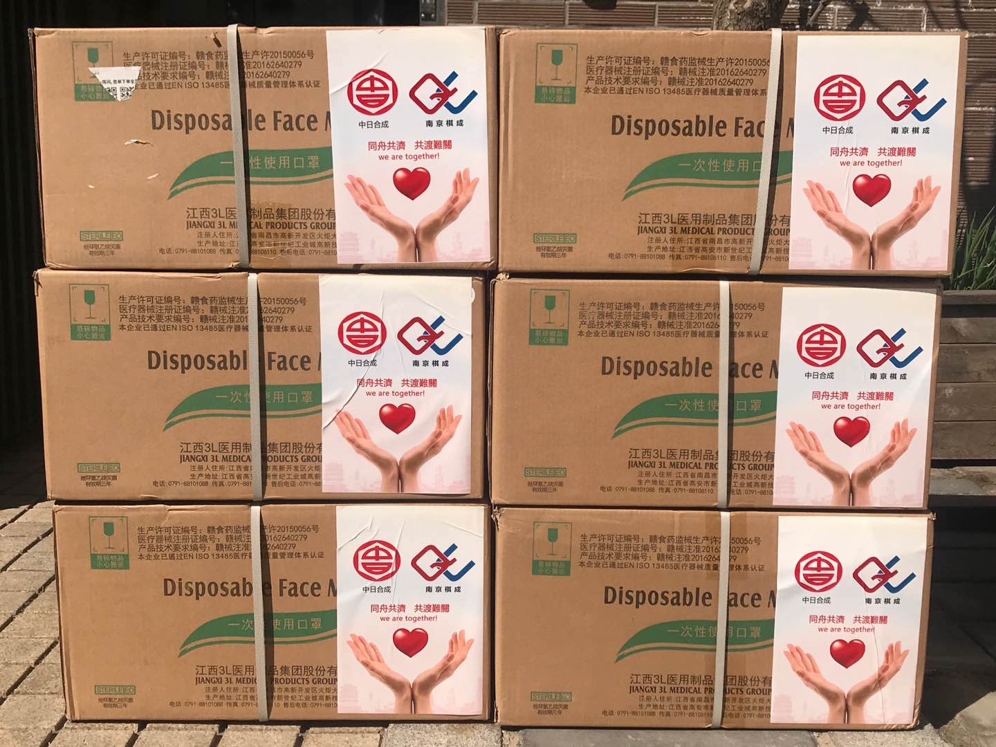 3月27日,南京棋成向台湾中日合成捐赠一次性医用口罩是10800个;