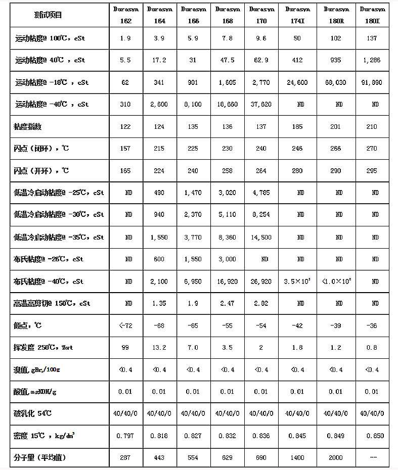 烯烃为原料的合成基础油,无色无味透明液体,具有优良的高低温性能、极佳的热氧化安定性,并经美国FDA认证。