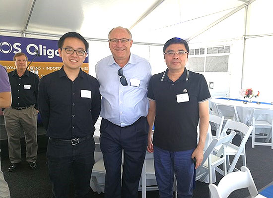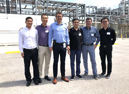 2018年5月12日-15日,棋成集团董事长龚惠江、上海棋成润滑材料总经理刘逊超、上海棋成润滑材料副总经理刘锋等一行人飞赴美国进行参观考察及学习交流活动。四天时间里,先后参观了德国司马化工集团美国公司产能5万吨的酯类油工厂和INEOS位于LaPorte的高粘度PAO新工厂。