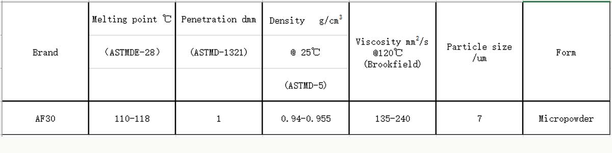 Product characteristic: Luwax AF30 is shaped from polyethylene wax under high pressure and high temperature. It’s composed of regular spherical particles with narrow and uniform particle size disturibution. Can be applied to any ink in order to improve the resistance to friction,anti-viscous, hand feel smooth etc…